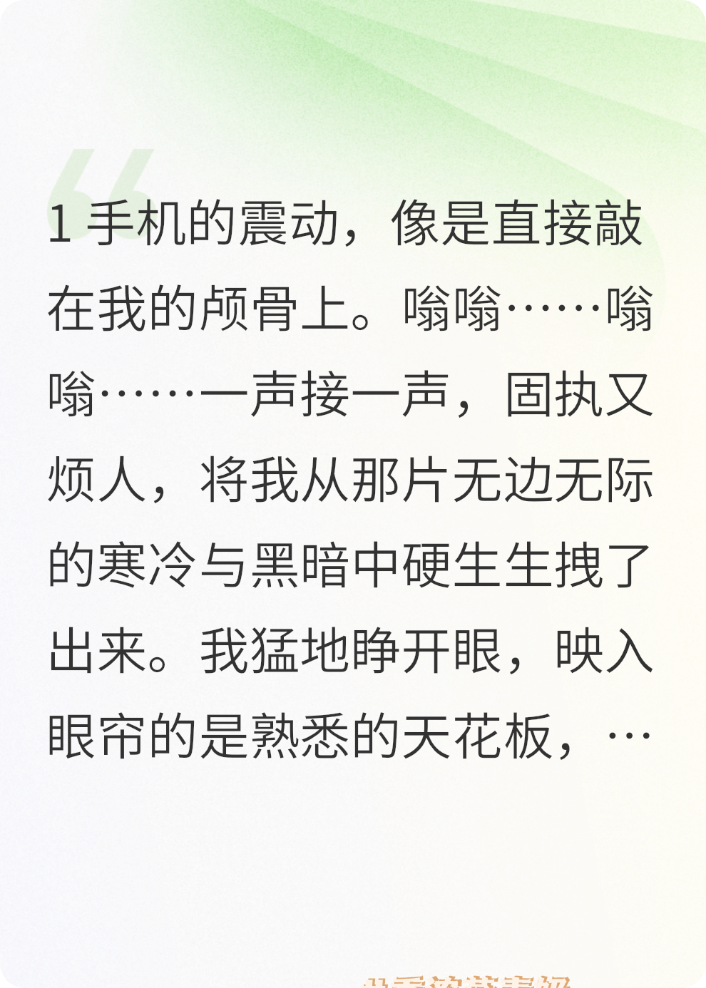 他们赌人性,我赌重生是一本备受好评的小说,作者作者jdclpl以其细腻的笔触和生动的描绘,为读者们展现了一个充满想象力的世界。小说的主角王春娟赵大勇勇敢、善良、聪明,深受读者们的喜爱。目前,这本小说已经完结引人入胜。如果你喜欢阅读小说,那么这本书一定值得一读!主要讲述了:1手机的震动,像是直接敲在我的颅骨上。嗡嗡……嗡嗡……一声接一声,固执又烦人,将我从那片无边无际的寒冷与黑暗中硬生生拽了出来。我猛地睁开眼,映入眼帘的是熟悉的天花板,以及从窗帘缝隙透进来的、带着霾灰色